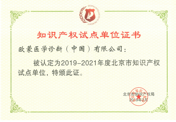 近日,歐蒙公司經(jīng)過近一年的知識產(chǎn)權(quán)試點單位培育,已通過由北京市知識產(chǎn)權(quán)局組織的試點單位審核驗收,獲得“北京市知識產(chǎn)權(quán)試點單位”榮譽稱號,并頒發(fā)試點單位證書。