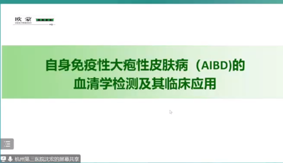 沈教授對自身免疫性大皰性皮膚病(AIBD)的定義、分類、血清學檢測及診治的典型病例進行了分享。AIBD是一組器官特異性自身免疫性疾病,主要損害的靶器官是表皮及表皮基底膜帶。表皮之間的連接結構稱為橋粒,而表皮和真皮之間的連接結構稱為半橋粒。橋粒結構主要靶抗原有Dsg1、 Dsg3。半橋粒結構主要靶抗原有BP 180、BP 230、肌內膜等。而橋粒結構引起表皮內水皰,半橋粒結構引起表皮下水皰,所以AIBD分為表皮內AIBD和表皮下AIBD。