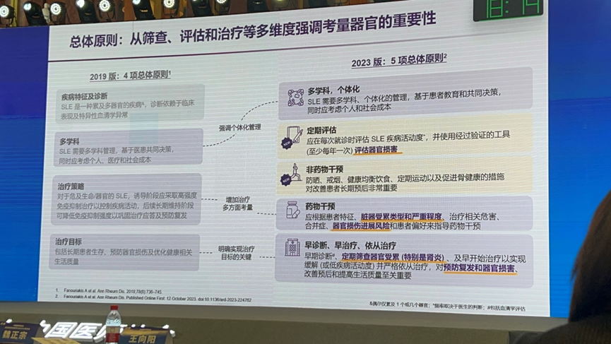 2023年EULAR SLE管理建議解讀中,楊娉婷教授指出SLE管理的總體原則是從篩查、評估和治療等多維度強(qiáng)調(diào)考量器官的重要性。建議應(yīng)在每次就診時評估SLE疾病活動度,并使用經(jīng)過驗(yàn)證的工具,至少每年一次評估器官損害。SLE以腎臟受累最為常見,需引起足夠的重視。實(shí)現(xiàn)治療目標(biāo)的關(guān)鍵是早診斷、定期篩查器官受累,及早開始治療以實(shí)現(xiàn)緩解并嚴(yán)格依從性治療,這對預(yù)防復(fù)發(fā)和器官損害、改善預(yù)后和提高患者生活質(zhì)量至關(guān)重要。