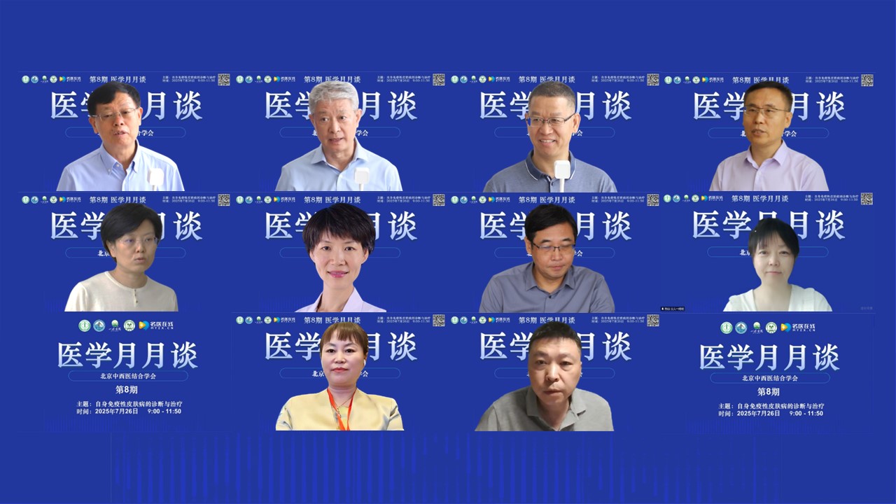 2025年7月26日,由北京中西醫(yī)結(jié)合學(xué)會(huì)舉辦的《醫(yī)學(xué)月月談(第8期)——自身免疫性皮膚病的診斷與治療》于線下(北京)線上同步舉行。本次論壇由北京中西醫(yī)結(jié)合學(xué)會(huì)腎臟病專(zhuān)業(yè)委員會(huì)主任委員、北京中西醫(yī)結(jié)合腎臟疑難病會(huì)診中心主任、北京大學(xué)航天中心醫(yī)院腎內(nèi)科主任醫(yī)師特聘教授、解放軍總醫(yī)院及南開(kāi)大學(xué)醫(yī)學(xué)院博士生導(dǎo)師謝院生教授擔(dān)任大會(huì)主席,解放軍總醫(yī)院李承新教授擔(dān)任大會(huì)執(zhí)行主席,北京醫(yī)院常建民教授、中國(guó)醫(yī)學(xué)科學(xué)院北京協(xié)和醫(yī)院左亞剛教授、解放軍總醫(yī)院王文娟教授作為講課嘉賓,中國(guó)醫(yī)科大學(xué)附屬盛京醫(yī)院吳嚴(yán)教授、空軍軍醫(yī)大學(xué)空軍特色醫(yī)學(xué)中心蔡宏教授、中國(guó)中醫(yī)科學(xué)院廣安門(mén)醫(yī)院崔炳南教授、西安交通大學(xué)第一附屬醫(yī)院鄭焱教授、陸軍軍醫(yī)大學(xué)新橋醫(yī)院王儒鵬教授作為本次大會(huì)的討論嘉賓。